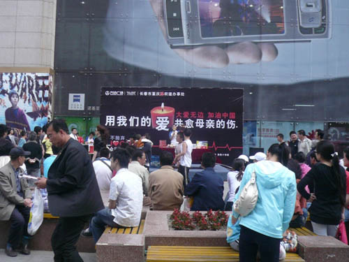 5月25日,长春万达广场举办了为灾区慈善义拍活动,活动得到了沃尔玛、重庆路街道办事处、神采飞扬等单位大力支持。