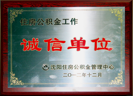 2012年12月24日,沈阳住房公积金管理中心相关领导莅临沈阳铁西万达广场,为我公司颁发了“住房公积金诚信单位”牌匾及“优秀经办员”证书,同时对公司下一步公积金管理工作进行了指导。