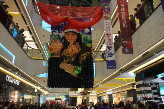 合肥天鹅湖万达广场展现蒙娜丽莎气球画 气球艺术展即将启动