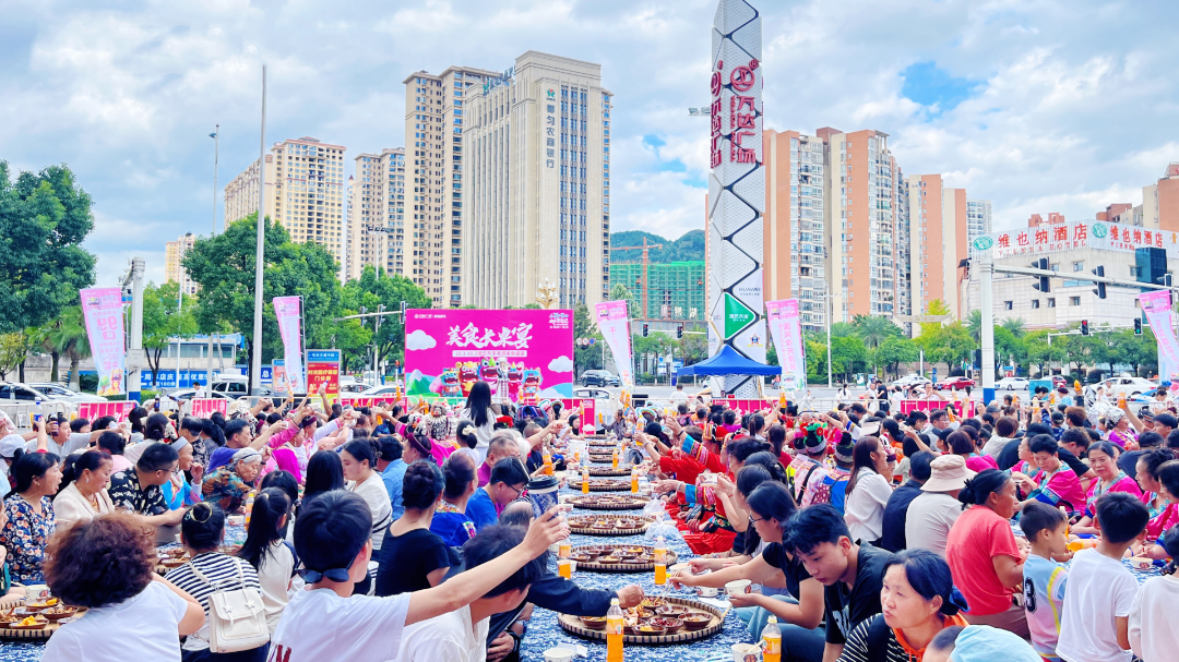 国庆期间,黔南都匀万达广场联合政府部门及场内餐饮商户,成功举办“非遗美食长桌宴”,通过呈现黔南州12县市非遗美食,邀约少数民族开展歌舞巡游及篝火晚会等活动,吸引众多市民游客到场品尝非遗美食、体验非遗文化。